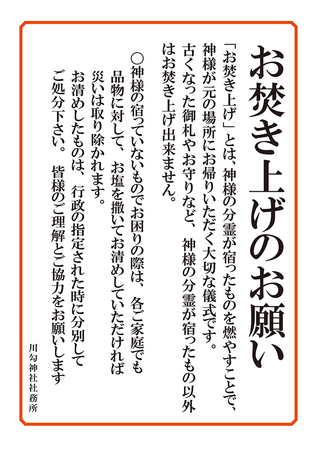 (4)お焚き上げ式:平成三十年二月十一日(日)午後三時より